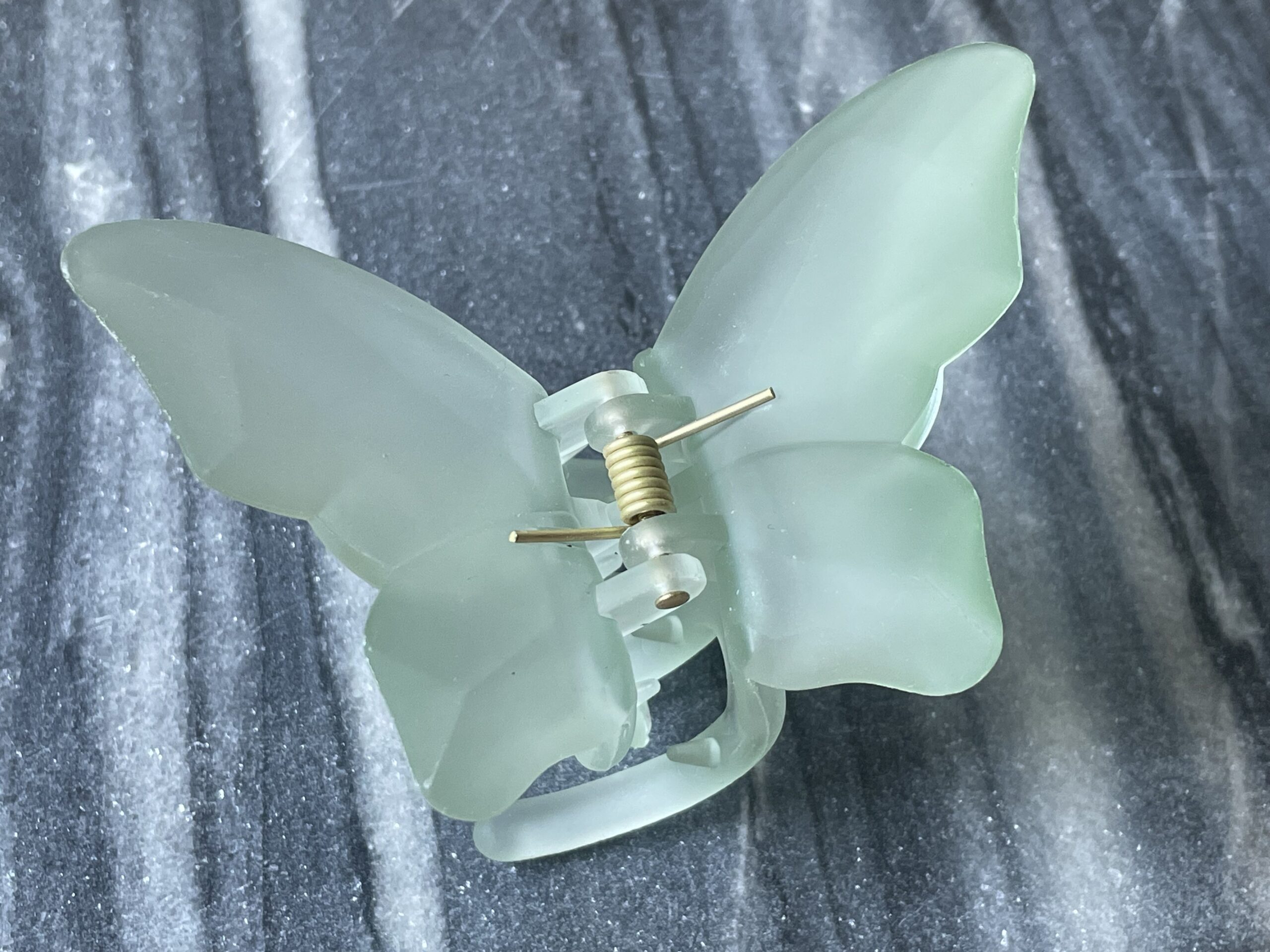 Kleur mint groen. Grootte van de vlinder ca 7cm.