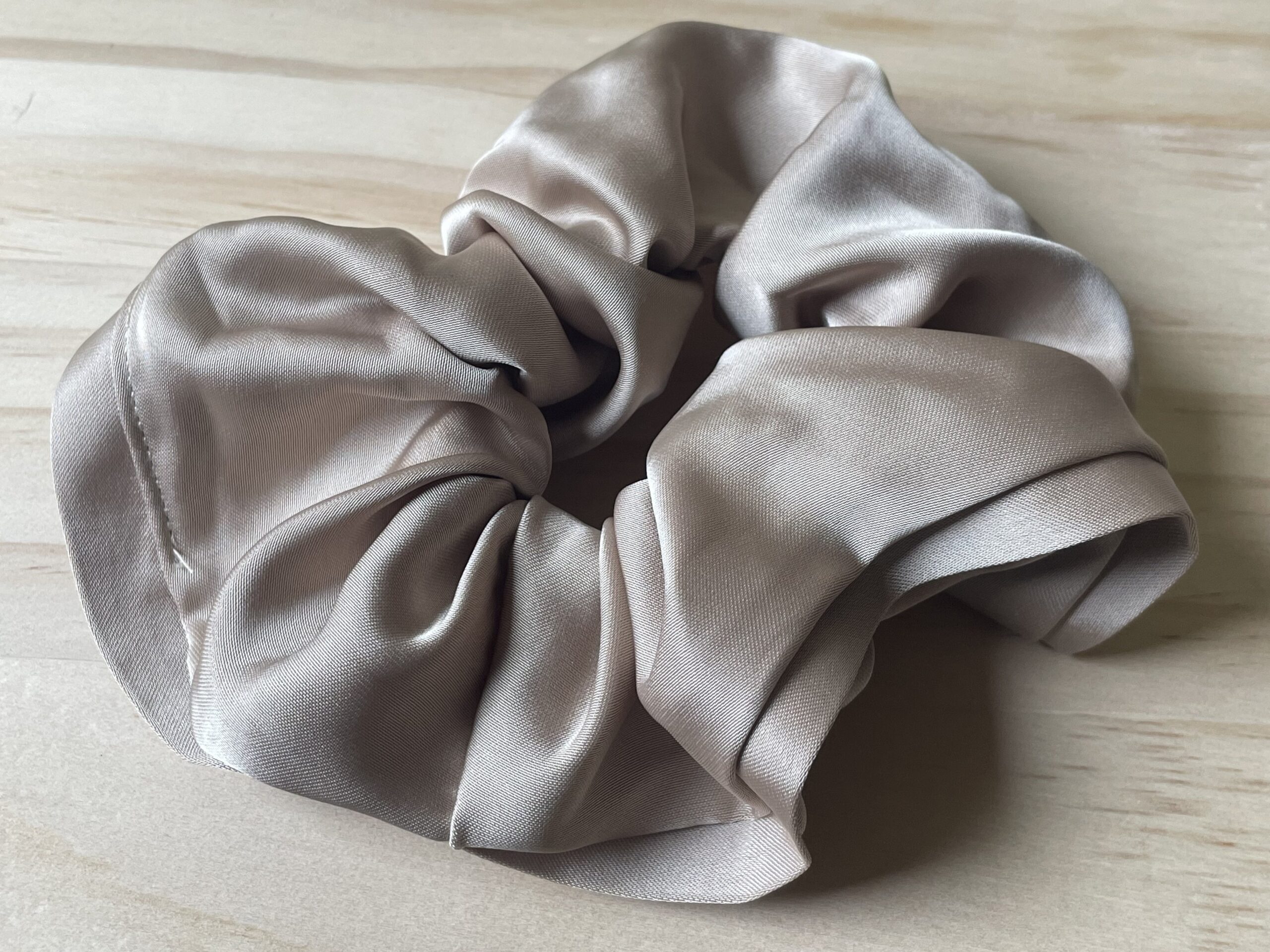 Zeer goede kwaliteit scrunchie van katoen. Kleur beige. Diameter ca. 14cm.