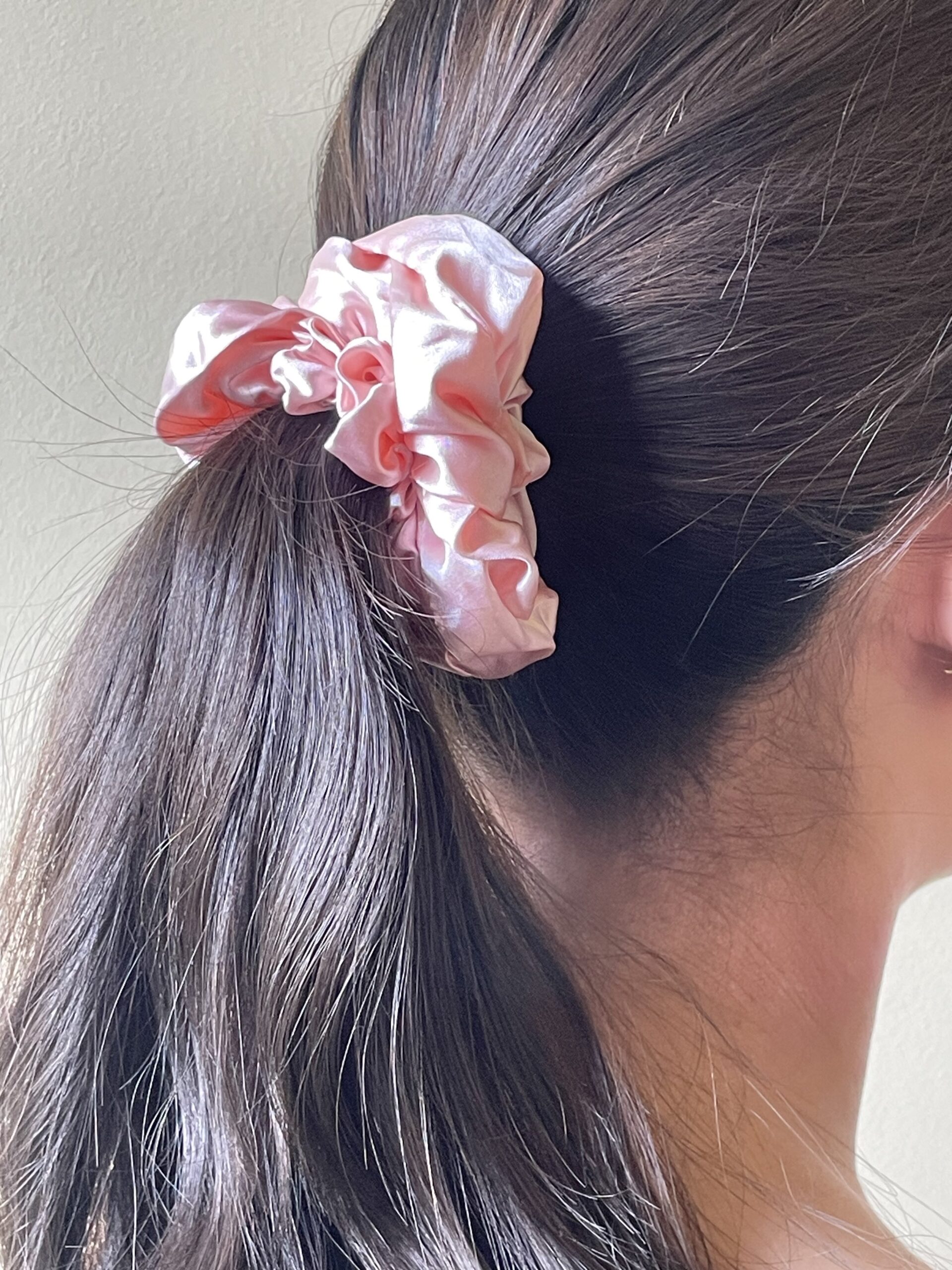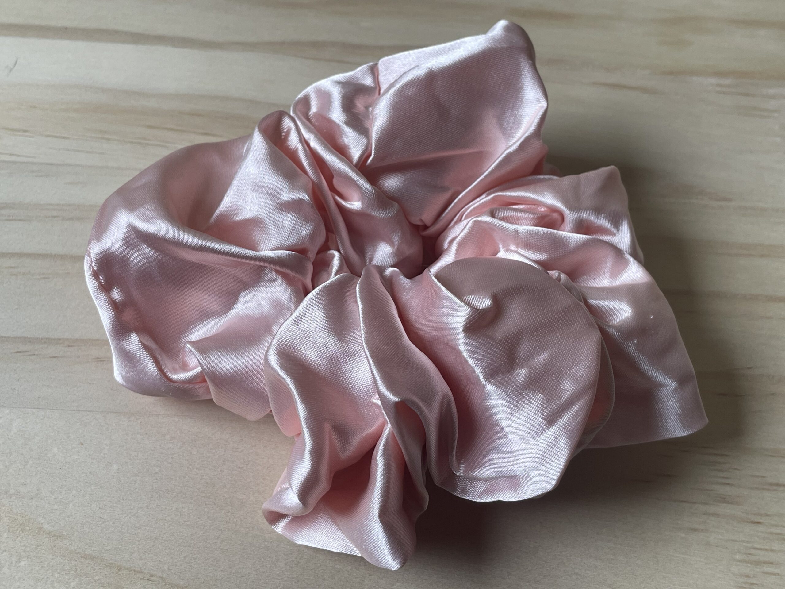 Zeer goede kwaliteit scrunchie van satijn stof. Kleur licht roze. Diameter ca. 11cm